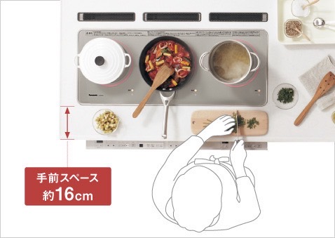 3つ横並びで、ゆったり広びろ。「トリプルワイドIH」