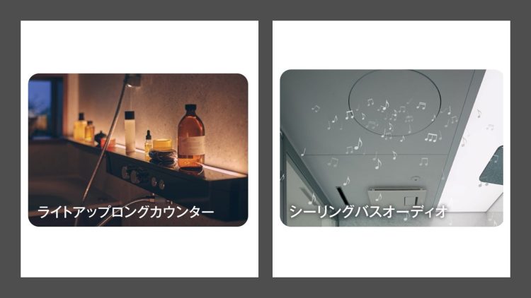 ➡天井から降り注ぐ音楽で、浴室がまるでオーディオルームに。お気に入りの曲を聴いて、歌って、存分にリフレッシュ🎶