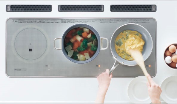 トリプルワイドIHはパナソニックならではの、横並びでゆったり広びろとしたクッキングヒーターです😊✨