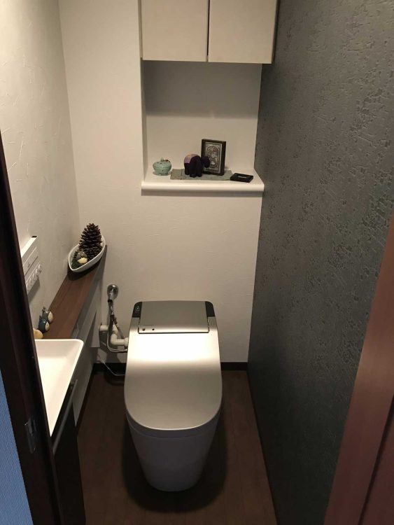 便座が壊れて、どうせリフォームするならとショウルームなようなトイレ空間を目指されました。