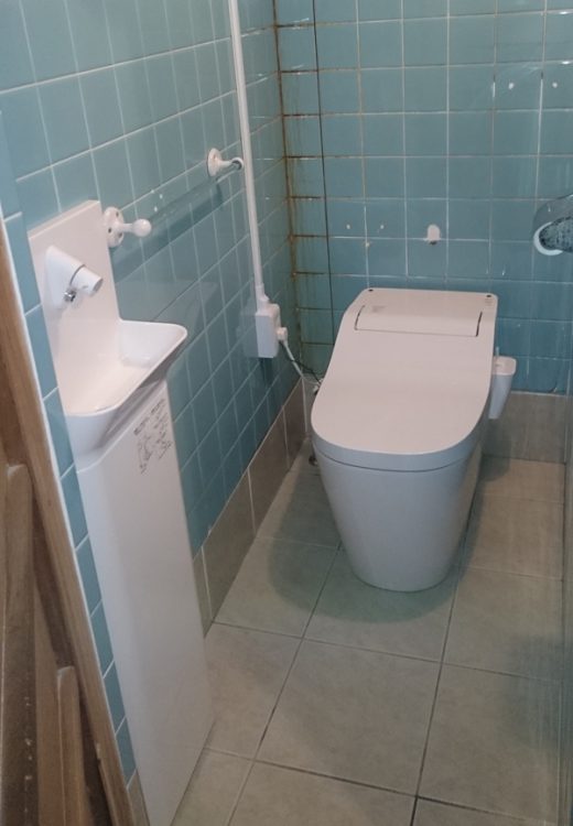和式のトイレは使いにくく、お困りのご様子でした。洋式へのお取替えをご提案して、奥の手洗いも手前に移設させていただきました。毎日のトイレシーンが本当に快適なったと笑顔をいただきました。《高松市O様邸》