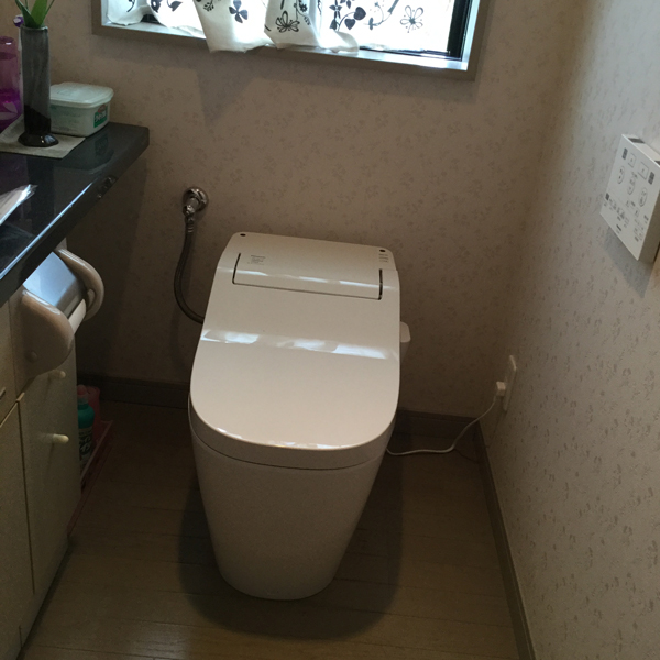 便座の暖房機能が壊れてしまい便座が冷たくなっていました。また2階のトイレでしたがタンクレスにしたいとご要望をいただきました。水圧が心配されましたがアラウーノは他社と異なり、ターントラップ方式ですので、ご心配なくお使いいただいています。