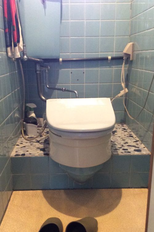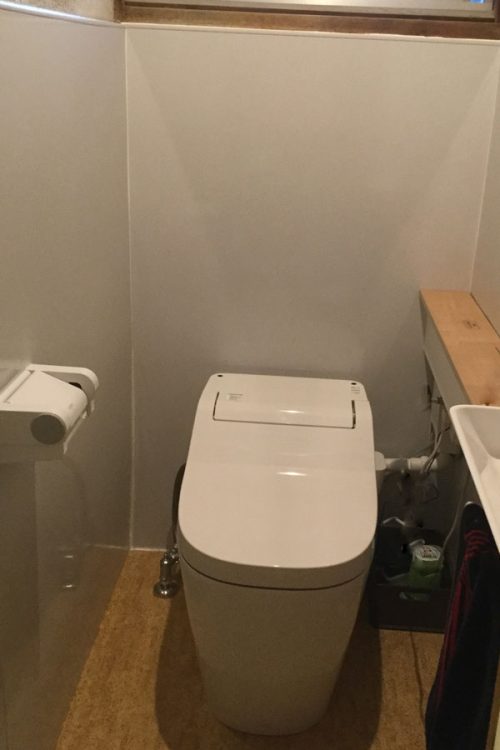 タイル壁の和式トイレでしたのでお手入れが大変なご様子でした。そこでボードの壁と洋式トイレをご提案しました。